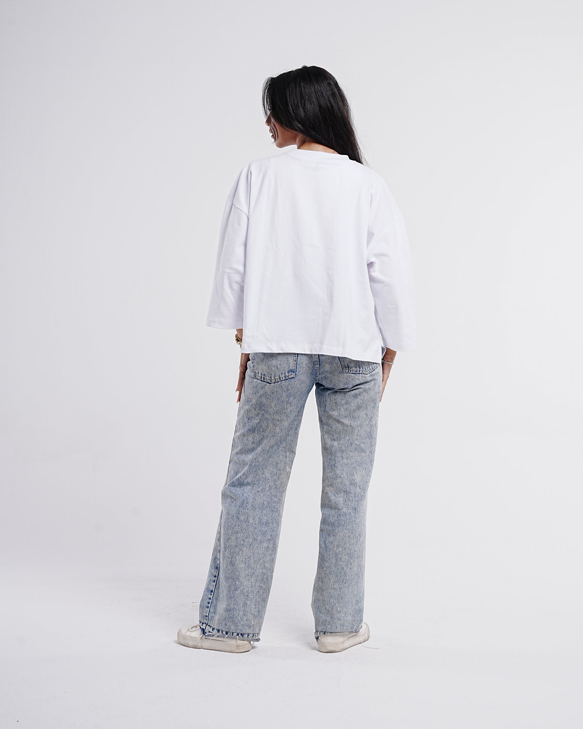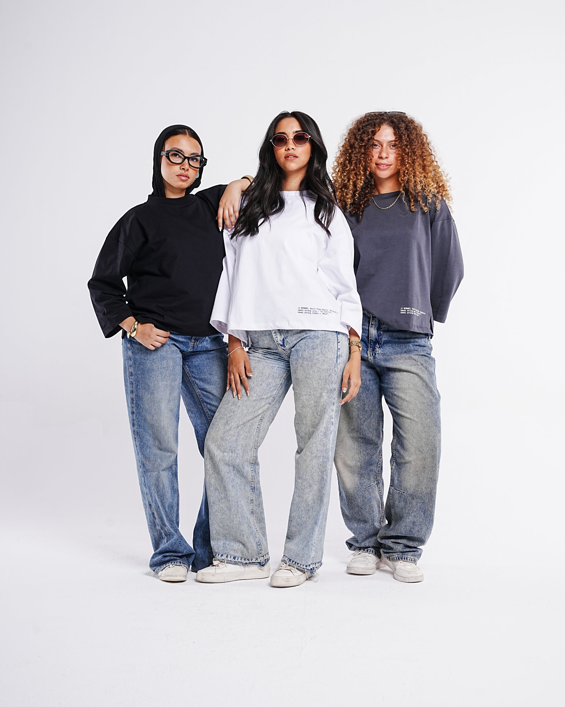 Where comfort meets statement. This boxy, cropped essential crafted from 100% cotton for a soft yet structured feel. Designed with wide sleeves and a dropped shoulder silhouette, it’s finished with a stitched quote detail that reflects the Bynari ethos: bold, minimal, and made to empower.